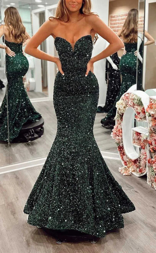 RP1965-Sparkling Royal Blue Mermaid Sweetheart Beaded Sequins Sleeveless Prom Evening Dresses Formal Party Gowns With Train