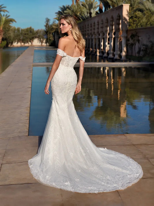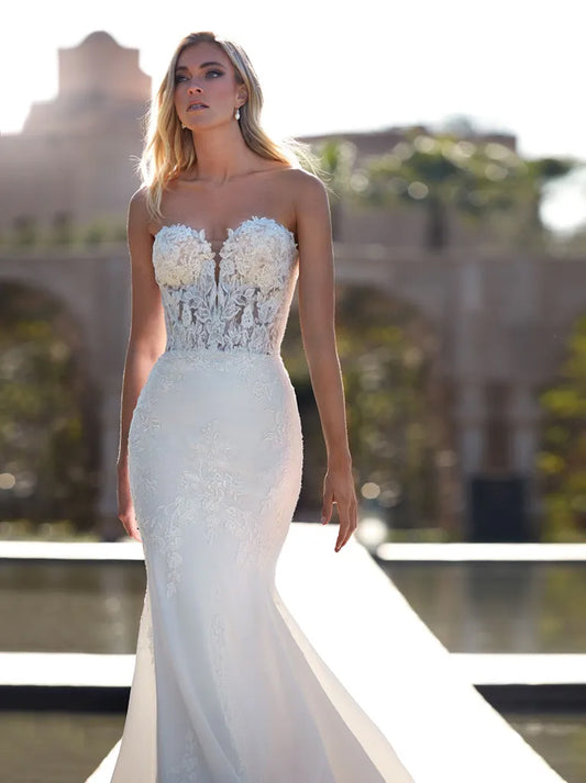 Simple & Elegant Mermaid Wedding Dresses Sweetheart Appliqued Tulle Sweep Tulle Bridal Gowns Custom Made