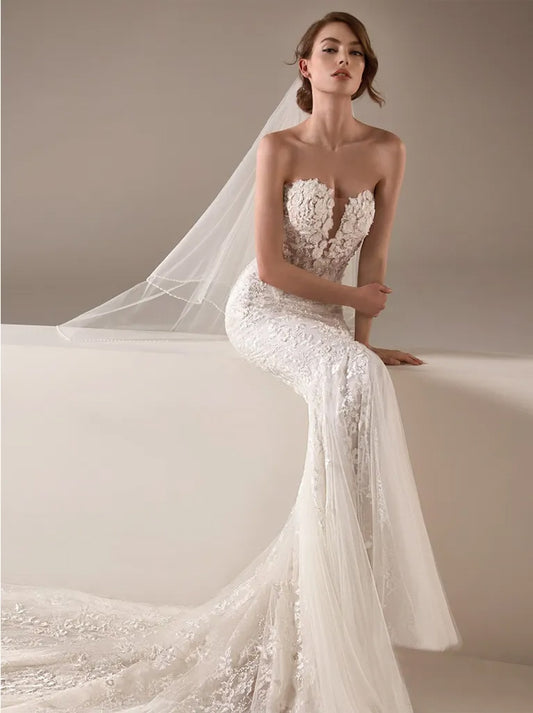 Gorgeous & Classic Mermaid Wedding Dresses Sweetheart Appliqued Satin Court Train Bridal Gowns Custom