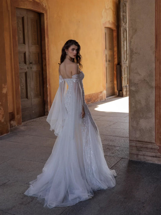 Classic & Sexy Mermaid Boho Wedding Dresses Sweetheart Beads Appliqueds Detachable Long Sleeves Sweep Train Tulle Bridal Gowns Custom