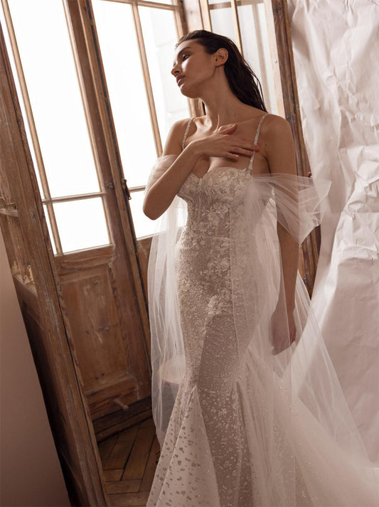 Gorgeous & Elegant Mermaid Wedding Dresses Sweetheart Appliqued Beads Tulle Sweep Train Bridal Gowns With Jacket