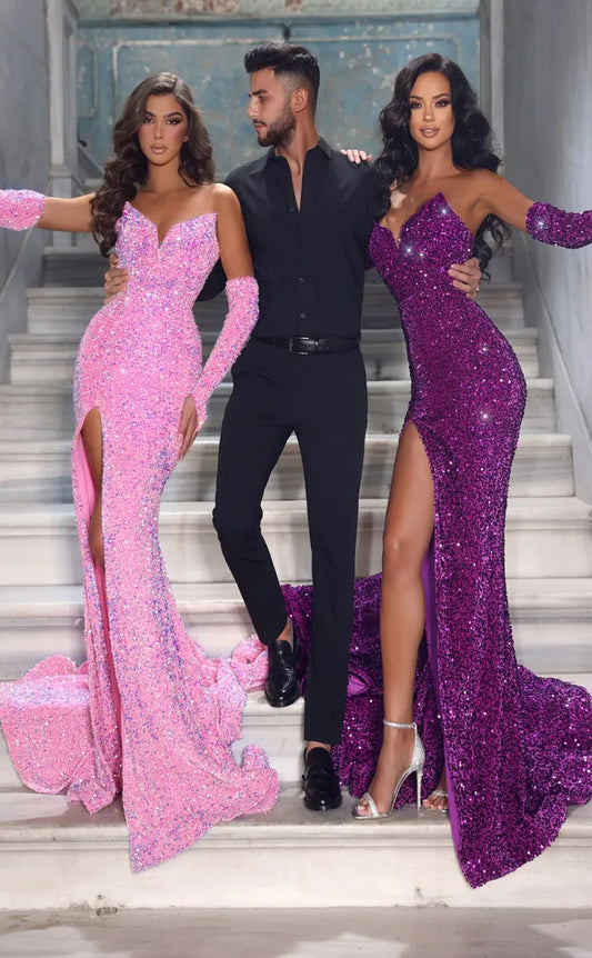 RP1522-Sparkling Purple Mermaid Sweetheart Sequins Beaded Side Slit Prom Evening Dresses Formal Party Gowns With a Wrap