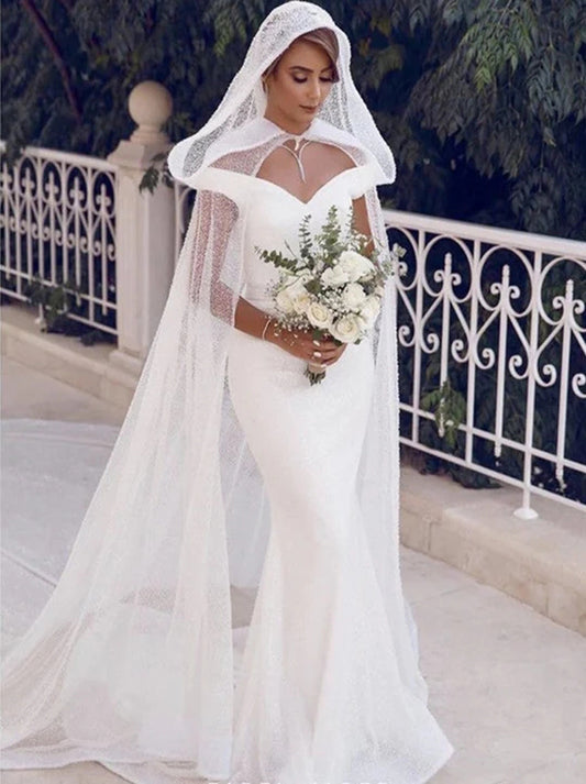 Sexy Mermaid Wedding Dresses V-Neck Beads Zipper Sweep Train Tulle Bridal Gowns Custom Made With A Long Wrap