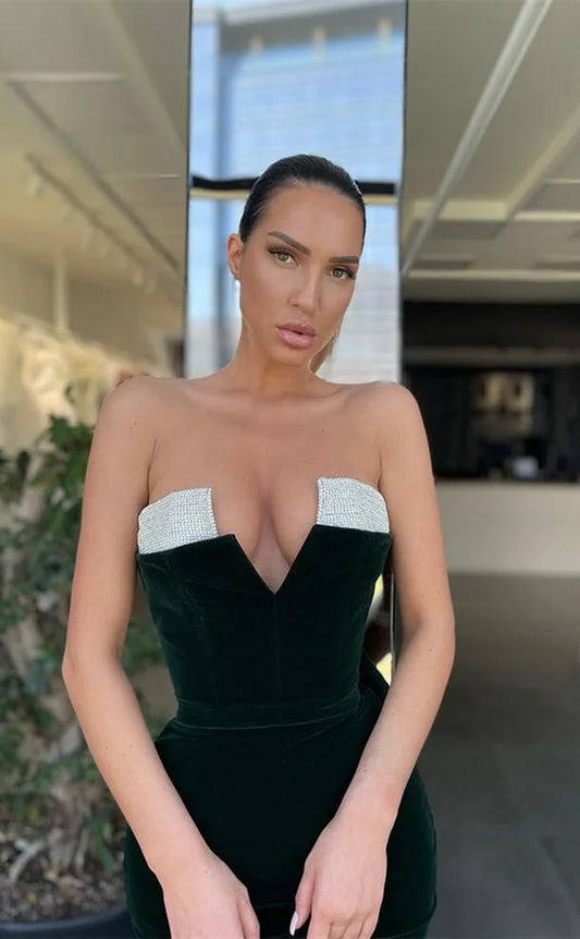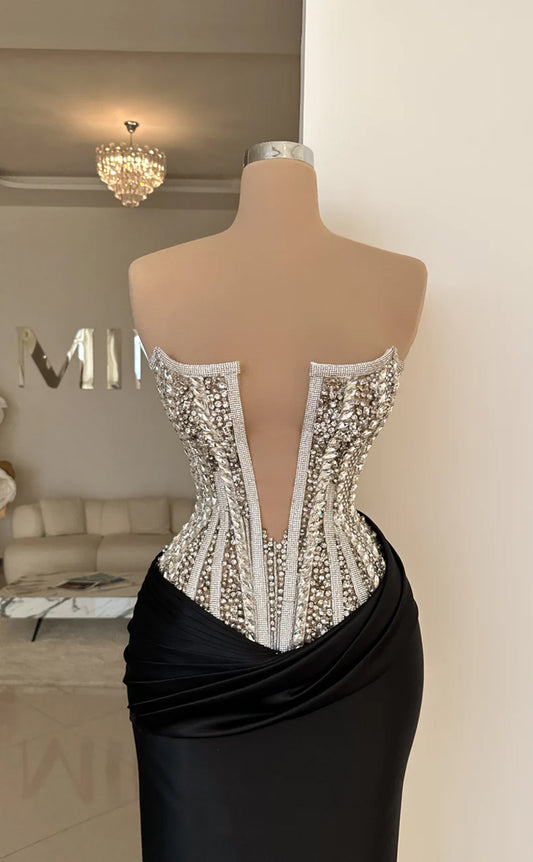RP709-Gorgeous Black Mermaid Sweetheart Crystals Ruched Beaded Sleeveless Velvet Long Prom Evening Dresses Formal Party Gowns With Slit