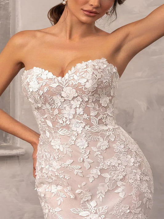 Gorgeous Mermaid Wedding Dresses Sweetheart Appliqued Sleeveless Tulle Sweep Train Bridal Gowns Custom Made