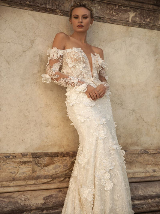 Charming & Gorgeous Mermaid Wedding Dresses V-Neck Lace Side Slit Floor Length Bridal Gowns With A Jacket