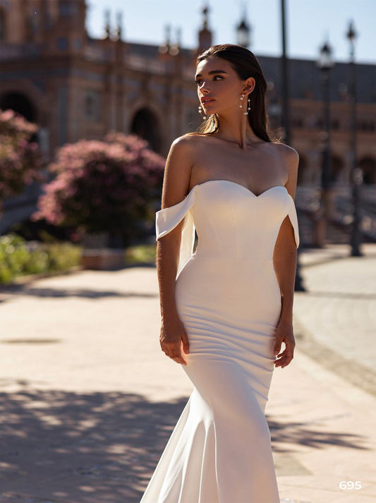 Simple & Elegant Mermaid Wedding Dresses Sweetheart Cap Sleeves Satin Sweep Train Bridal Gowns Custom Made