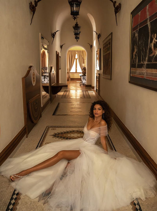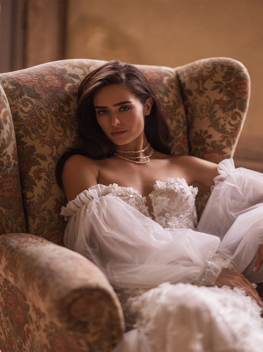 Charming Ball Gown Wedding Dresses Sweetheart Detachable Puffy Sleeves Tulle Court Train Bridal Gowns Custom